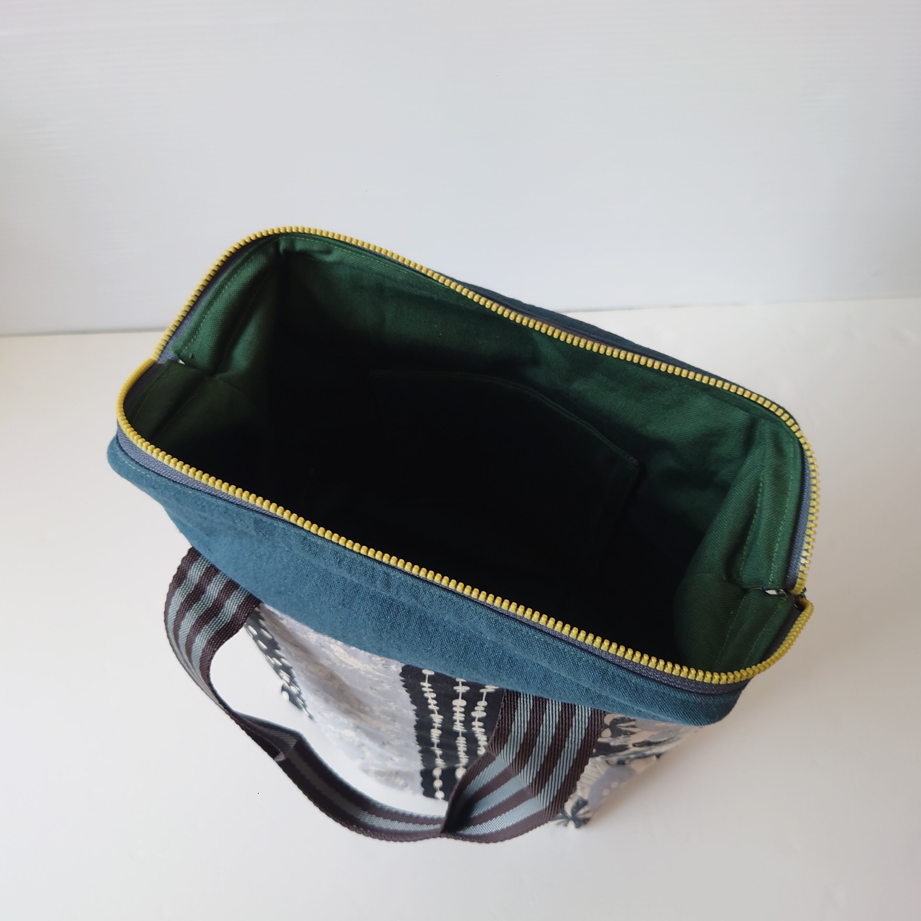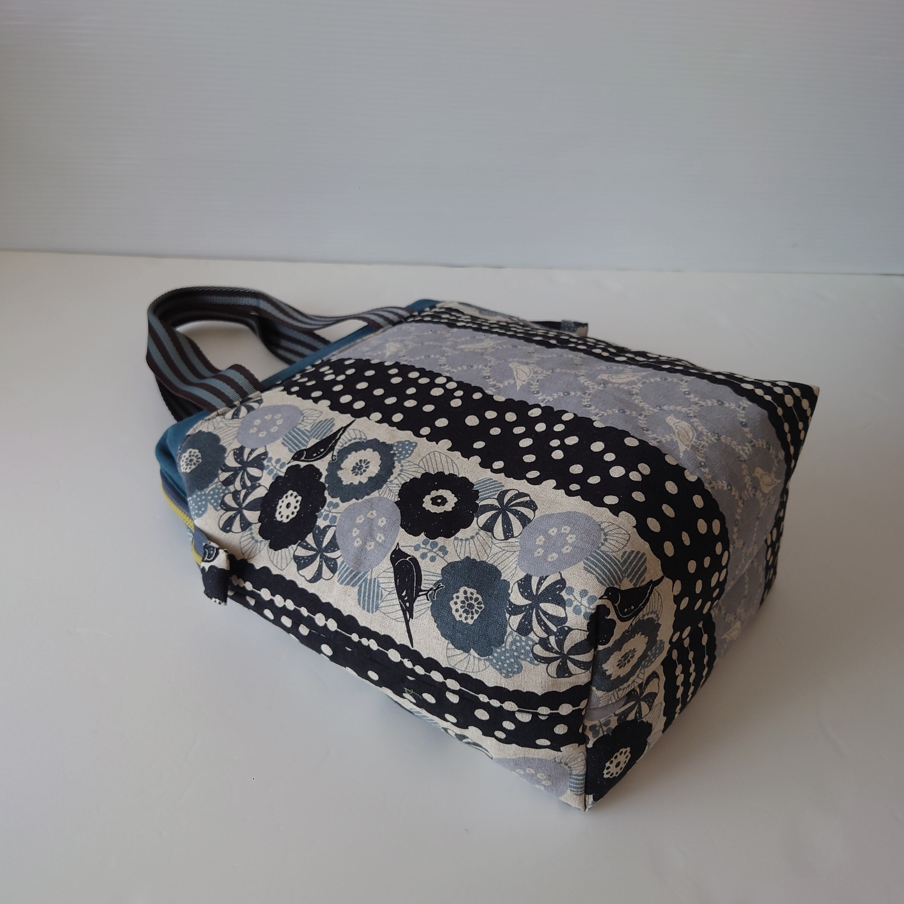 カラーファスナーと持ち手のストライプがアクセントに