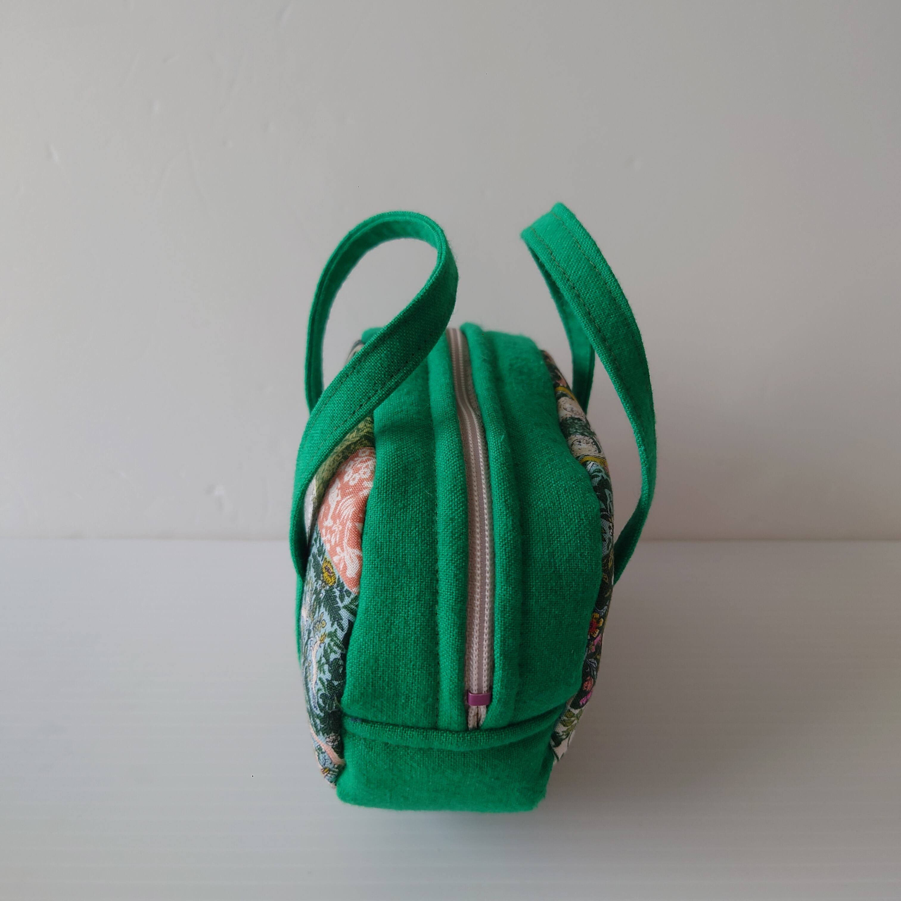 かわいいパッチワークボタニカル柄とグリーンを組み合わせて